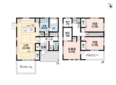 間取内訳/間取備考 | LDK20.4帖 / 洋8.5帖 / 洋6.5帖 / 洋6.5帖 / S2.0帖 / |